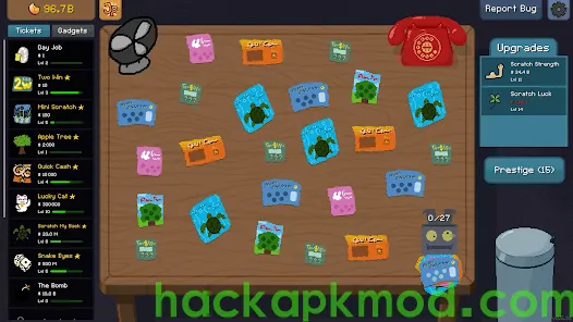 Scritchy Scratchy(MOD Unlocked) is a super-satisfying scratch card incremental game where luck is your weapon, and glittering riches are just a scratch away.