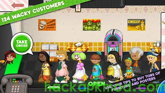 Papa's Cheeseria To Go(Unlimited money) is kicking off its grand opening with a special performance by the high-energy band, Scarlett and the Shakers! Unfortunately the concert is canceled when all of the music gear is stolen, and you'll need to pick up a job to afford buying new instruments for the band. Thankfully Papa Louie has the perfect solution for you: He's putting you in charge of making grilled cheese sandwiches in his newest restaurant!