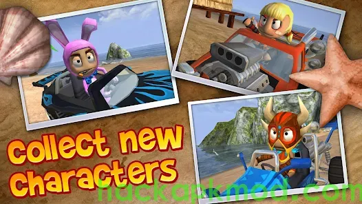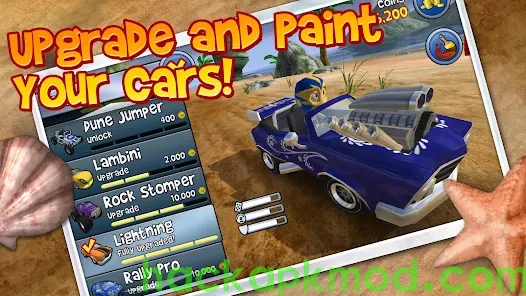 Unlock new cars and characters, upgrade cars, and improve your game with performance-boosting powerups and gadgets.