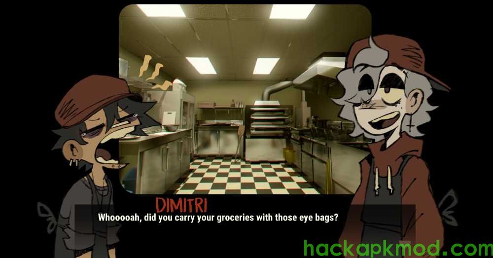 Pine Point: Insomniac is a short, surreal slice-of-life visual novel following Nil, a severely sleep-deprived slacker, as he tries to survive the day at work with his best friend, Dimitri.